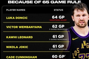 東契奇64場(chǎng)腿筋受傷;坎寧安、布克、華子、詹姆斯已失去評(píng)獎(jiǎng)資格;文班亞馬、小卡、約基奇皆剩5場(chǎng)比賽懸而未決;