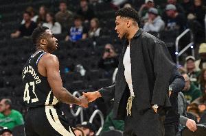 本場比賽,雄鹿球員字母弟弟和字母哥哥在最后時刻獲得出場機(jī)會,其中字母弟弟出戰(zhàn)4分27秒,投籃2中0均來自外線,罰球2中1,拿到1分1籃板的數(shù)據(jù);字母哥哥出戰(zhàn)5分12秒,投籃1中0來自外線,沒有得分入賬,拿到1籃板1搶斷的數(shù)據(jù)。