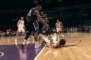 杰弗里斯推倒楊瀚森指著他罵罵咧咧吃T