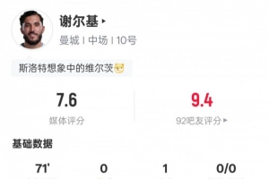 體育資訊4月4日訊 足總杯1/4決賽,曼城主場迎戰(zhàn)利物浦,謝爾基首發(fā)出戰(zhàn),貢獻1次助攻,還有3次過人成功和2次關鍵傳球,評分7.6。