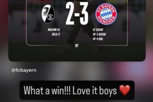 體育資訊4月5日訊 拜仁在本輪德甲讓二追三,逆轉(zhuǎn)絕殺弗賴堡。因傷缺陣的凱恩也在賽后通過(guò)社媒慶祝勝利。